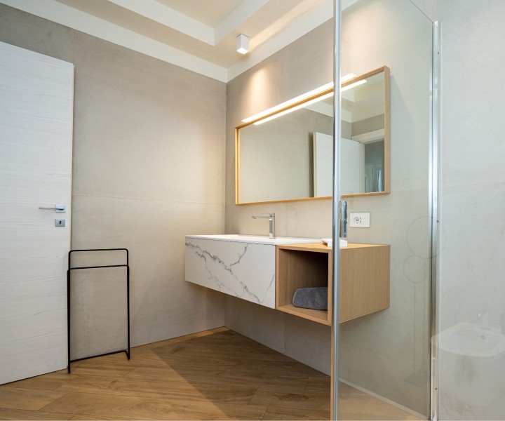 Ti guidiamo nella scelta di materiali e finiture di alta qualità, creando un bagno che unisce eleganza e durata nel tempo.